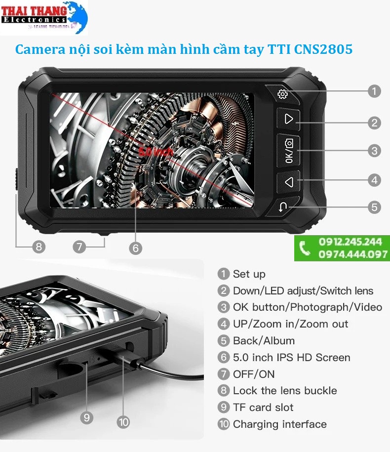 Camera nội soi kèm màn hình cầm tay dây 5m CNS2805 thế hệ mới