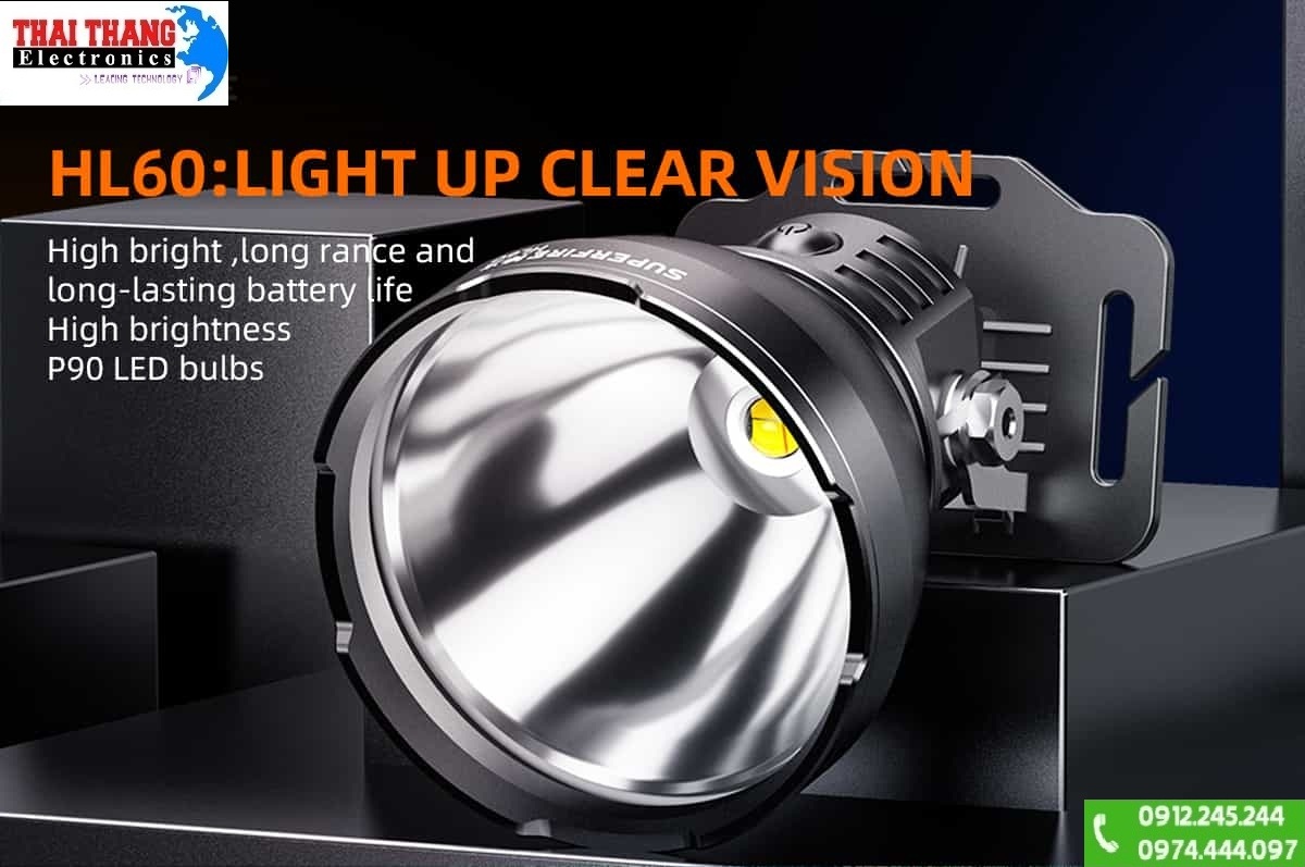 Đèn pin đội đầu Superfire HL60 là dòng đèn pin đội đầu chuyên dụng của Supfire được thiết kế với chất lượng tốt nhất,đèn được sử dụng bóng LED P90 cho cường độ ánh sáng lên tới 2500lumen , khoảng cách chiếu xa 400m. Superfire HL60 thường được sử dụng cho các hoạt động tìm kiếm cứu hộ cứu nạn, các hoạt động tuần tra, bảo vệ hoặc cho những người đi rừng, dã ngoại...