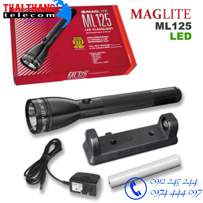 Đèn pin ML125 LED Rechargeable/Alkaline Là loại đèn pin công nghệ LED thế hệ mới nhất dùng được cả hai loại:pin sạc dung lượng cao (NiMH) kèm theo hoặc 3 viên pin trung Alkaline rời (C-cell) có kích thước vừa tay, chắc chắn thích hợp cho nhiều công việc yêu cầu cao, chịu va đập tốt, chống thấm nước, độ sáng rất cao, thời lượng pin cực lâu, trong điều kiện chiếu sáng nhất liên tục thời lượng hoạt động lên đến 25 giờ (có thể thay đổi dựa trên điều kiện và thói quen sử dụng).