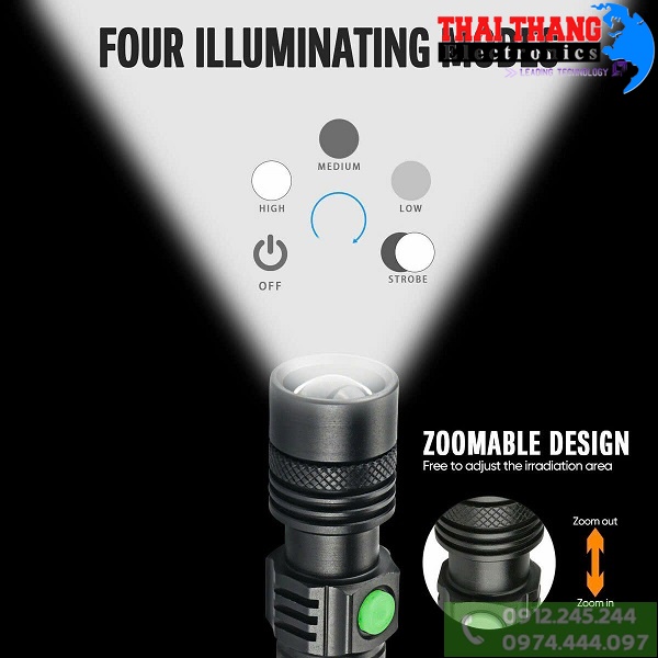 ĐÈN PIN SẠC MINI CẦM TAY CÓ ZOOM TERINO T518 CHÍNH HÃNG
