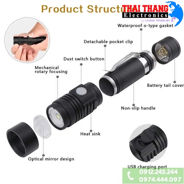 • Đèn pin sạc siêu sáng TERINO T77 cầm tay chống nước chính hãng