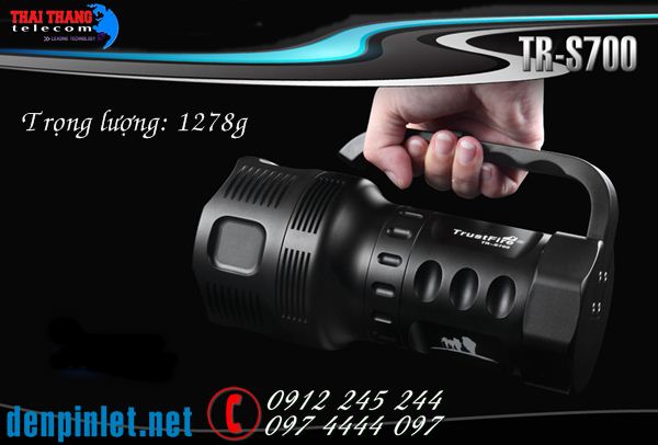 - Với độ sáng cao 3800 lumen, pin dung lượng lớn 3 x 5000 mah, khả năng chống nước, hộp đựng thiết kế bằng nhôm chắc chắn, sang trọng đèn pin xách tay TrustFire S700 rất thích hợp sử dụng trong công tác phòng chống bão lụt, tìm kiếm cứu nạn, tuần tra trong đêm, trang bị trên các tàu đi biển ...