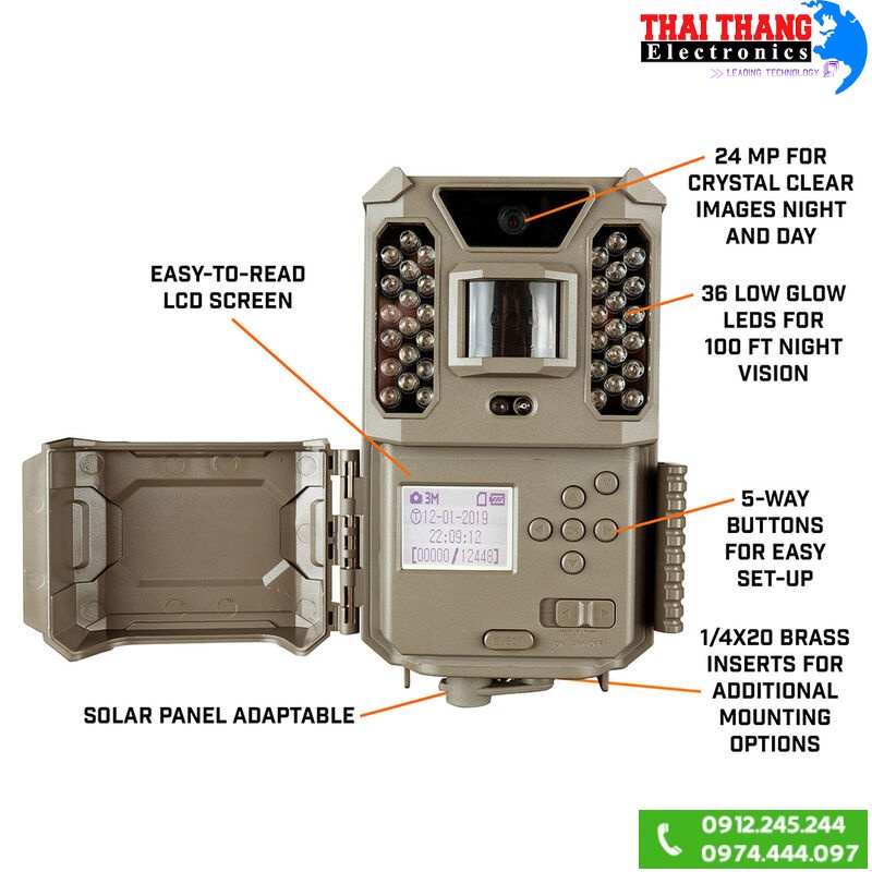 Máy tích hợp cảm biến phát hiện chuyển động PIR siêu nhạy cho khoảng cách phát hiện chuyển động đến ~30m, tốc độ kích hoạt chỉ 0.3 giây. Độ nhạy cảm biến sẽ tự động điều chỉnh tùy theo điều kiện môi trường, ngoài ra người dùng có thể điều chỉnh thủ công với độ nhạy thấp, trung bình và cao. Hệ thống đèn hồng ngoại đêm IR 36 LED (không phát sáng), đèn IR có phạm vi hoạt động 30m giúp quan sát rõ ràng các đối tượng trong đêm từ khoảng cách xa. Sản phẩm được trang bị màn hình LCD B&W độ nét cao để điều chỉnh thông số.