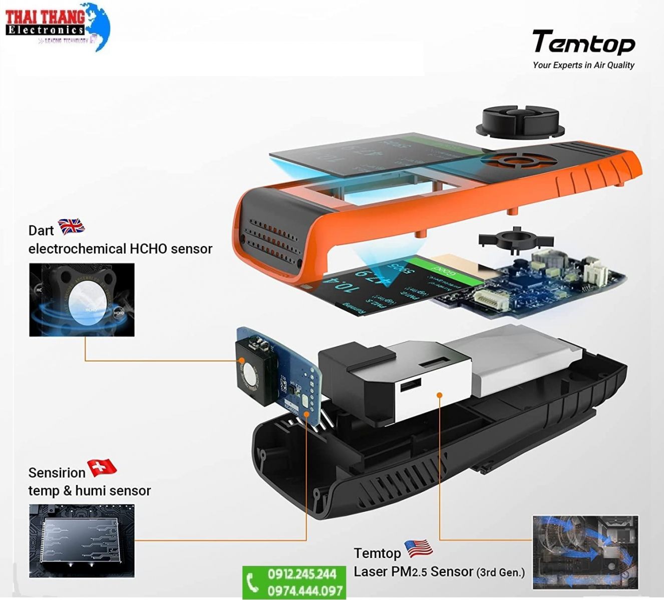 - Sử dụng cảm biến đo khí siêu nhạy chính hãng từ Mỹ, Anh và Thụy Sĩ