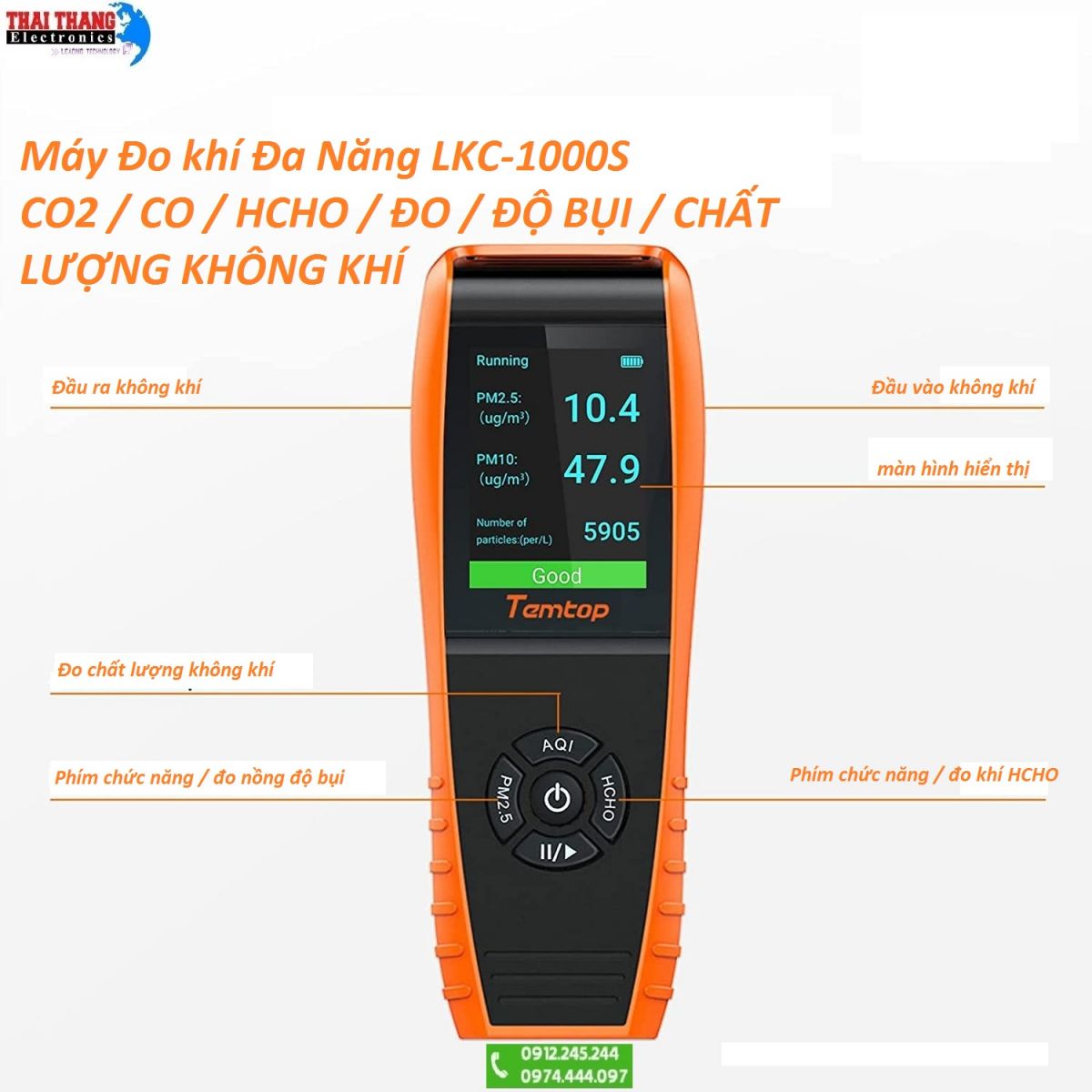 Tính năng máy đo chất lượng môi trường Temtop LKC-1000S: