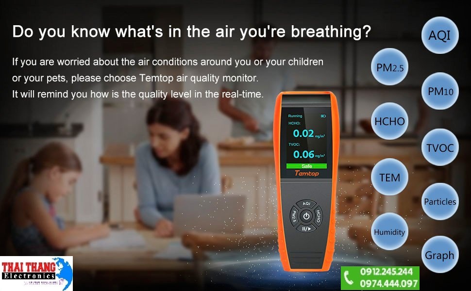 Máy đo khí đa năng Temtop LKC-1000S là sản phẩm giúp người dùng dễ dàng xác định mức độ ô nhiễm ở nơi sống và nơi làm việc của mình. Máy ứng dụng công nghệ đo tiên tiến với các cảm biến hiện đại giúp người dùng đo được đa dạng các loại bụi mịn, các loại khí độc một cách nhanh chóng và chính xác nhất. Sản phẩm trang bị cho nhà ở, cơ quan, nhà máy, bệnh viện, khu vui chơi, siêu thị, nhà ga,….