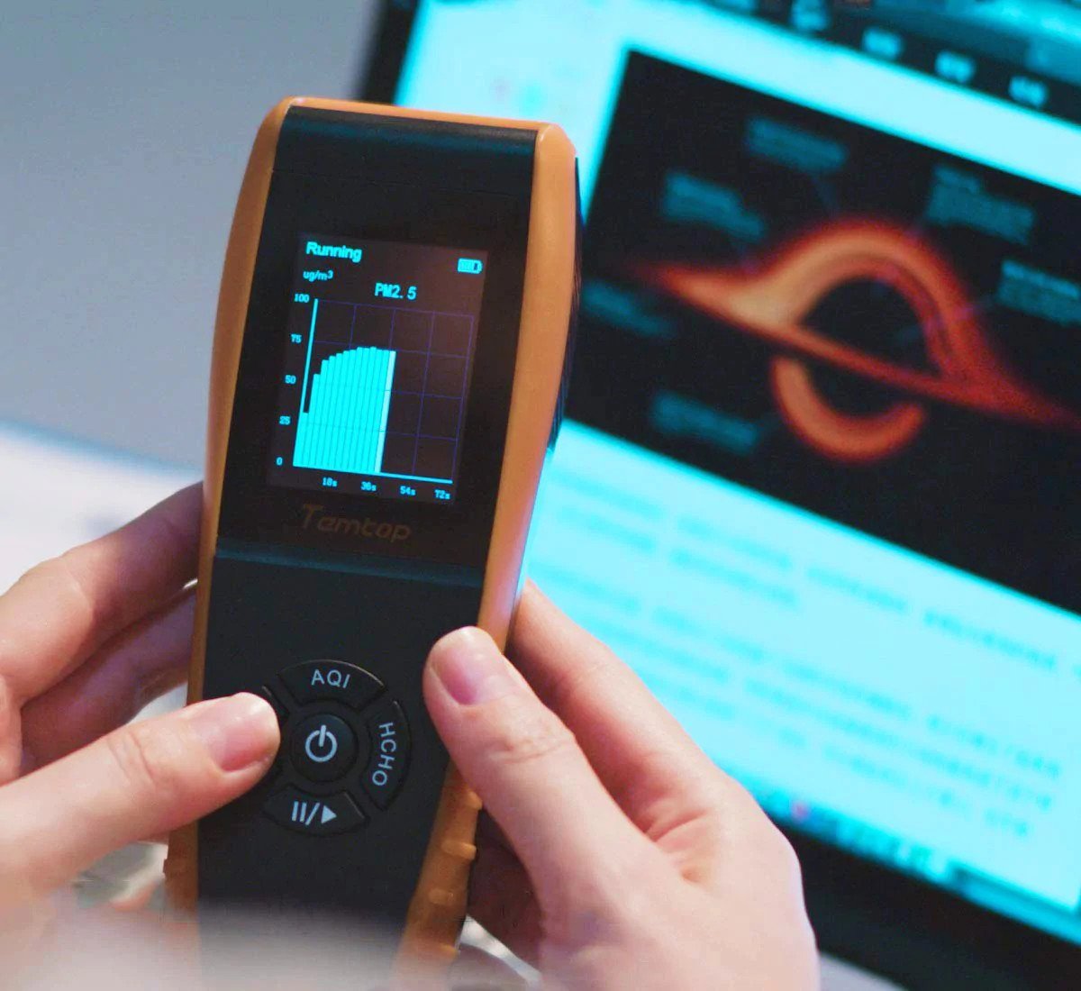 - Màn hình hiển thị 6 màu cảnh báo tượng trưng cho chất lượng môi trường