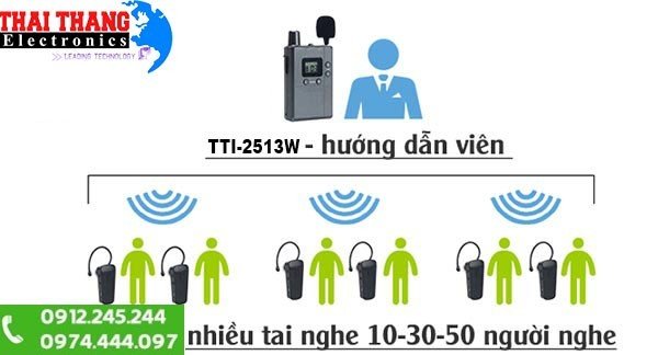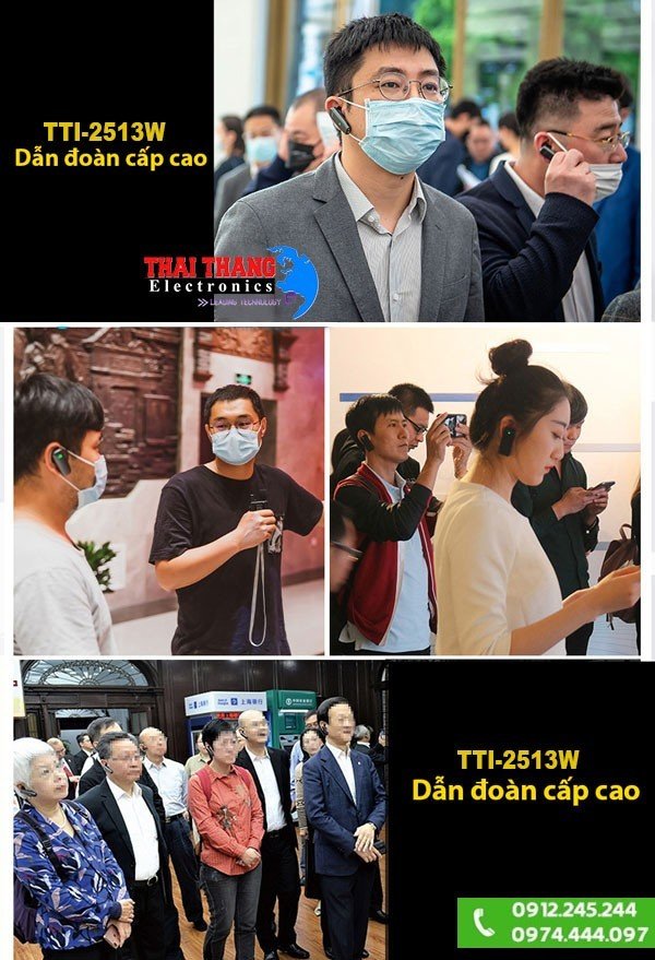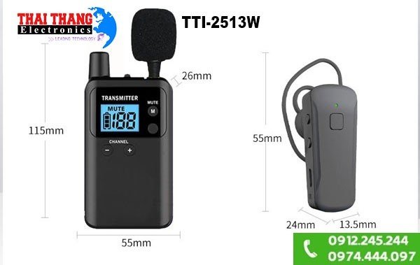 micro hướng dẫn viên du lịch không dây dẫn đoàn TTI-2513W tai nghe Bluetooth kết nối nhiều người