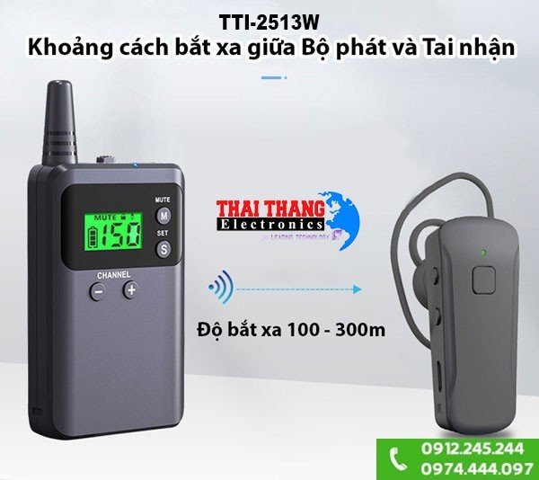 Micro không dây Bluetooth TTI-2513W là tổ hợp thiết bị thu phát được kết nối bởi nhiều bộ phận riêng lẻ, vì vậy các thiết bị có thể mua riêng, thuận tiện cho việc lắp đặt và thay thế trong nhiều môi trường công việc khác nhau. Một bộ hoàn chỉnh bao gồm: máy phát( Micro ) + máy thu(nghe) + cáp sạc (dosk sạc) + hộp lưu trữ. Một máy phát có thể kết nối tới 100.000 máy thu, máy thu có thể sử dụng dosk sạc hoặc sử dụng dây USB để sạc điện. Bộ phát được tích hợp 48 kênh với khả năng tự động lọc tiếng ồn và giảm thiểu khả năng can thiệp từ thiết bị khác, bộ thu sử dụng Tai nghe BLUETOOTH TTI-2513W với tính năng dò tìm kênh tự động, với khoảng cách truyền âm từ 100-300m cùng thời lượng pin sử dụng lâu dài, sản phẩm phù hợp cho hướng dẫn viên du lịch, dẫn đoàn trong chính phủ, hướng dẫn trong các nhà máy cao cấp..