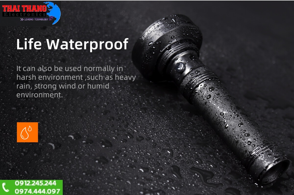 Đèn pin UV 100 led Supfire UV06 sử dụng nguồn là 6 pin AA hoặc 2 pin sạc 26650 (không kèm theo sản phẩm) cho thời gian hoạt động lâu dài. Đèn chống nước đạt tiêu chuẩn IP46 cho phép đèn hoạt động tốt trong môi trường thời tiết xấu