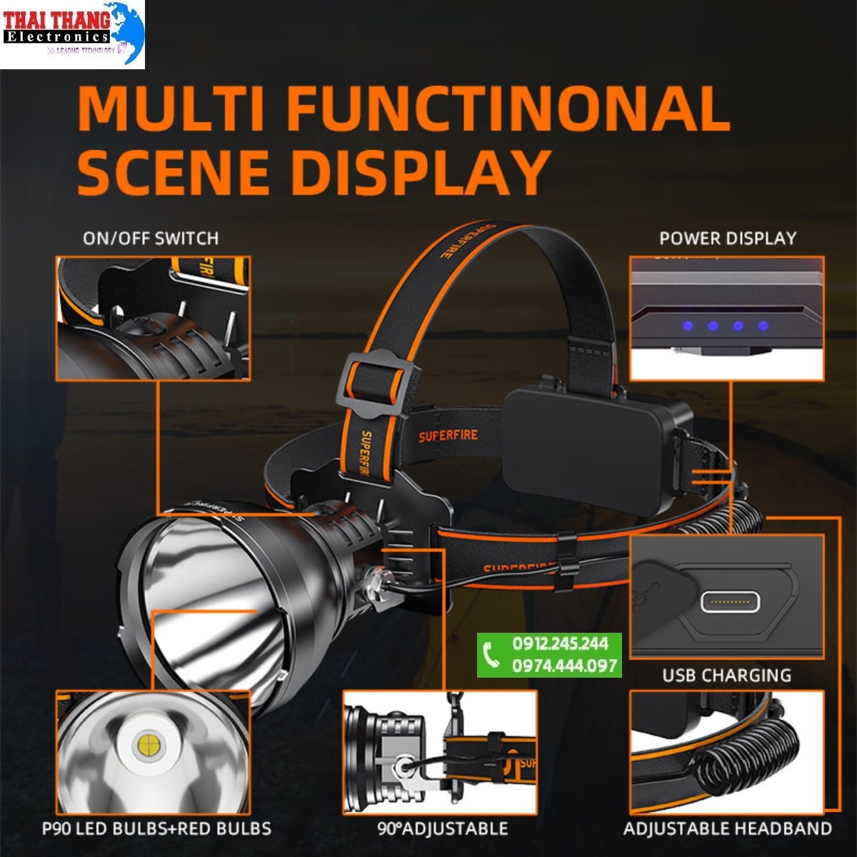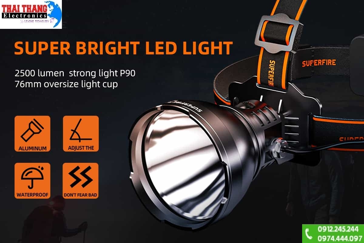 Đèn pin đội đầu Superfire HL60 là dòng đèn pin đội đầu chuyên dụng của Supfire được thiết kế với chất lượng tốt nhất,đèn được sử dụng bóng LED P90 cho cường độ ánh sáng lên tới 2500lumen , khoảng cách chiếu xa 400m. Superfire HL60 thường được sử dụng cho các hoạt động tìm kiếm cứu hộ cứu nạn, các hoạt động tuần tra, bảo vệ hoặc cho những người đi rừng, dã ngoại...
