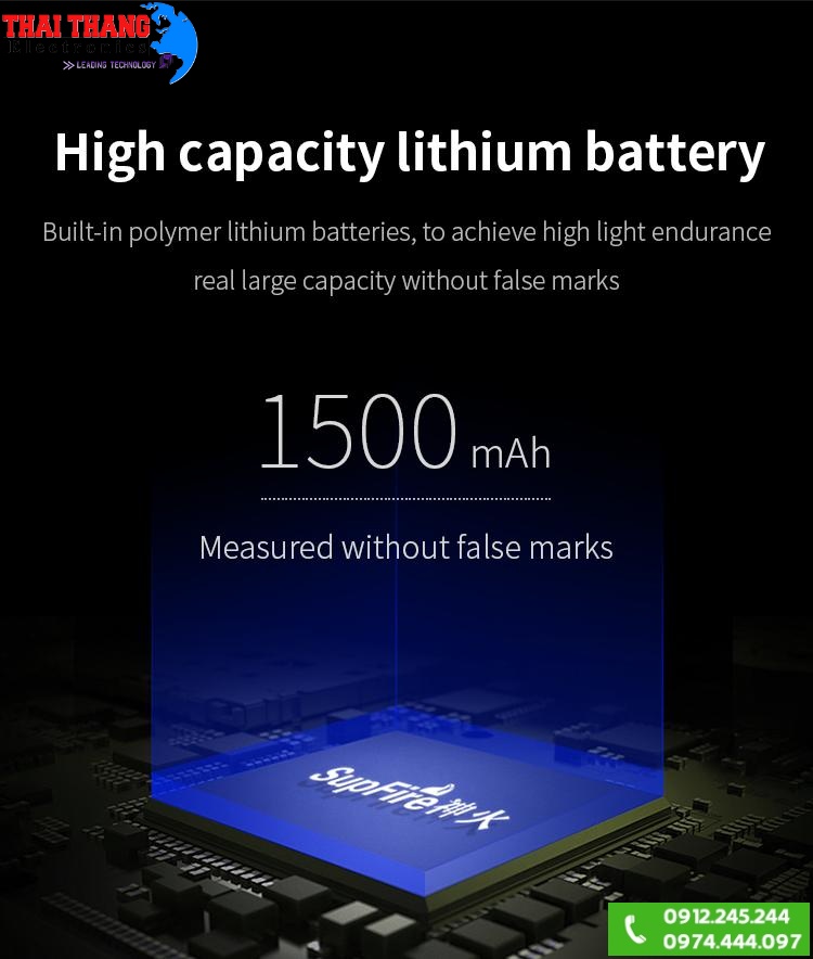 Đèn pin siêu sáng SupFire HL12 sử dụng nguồn là pin 18650 dung lượng cao cho thời gian hoạt động 160 phút. Đèn có thiết kế cống nước chuẩn IP43 giúp đèn hoạt động tốt trong điều kiện mưa nhỏ hoặc sương mù.