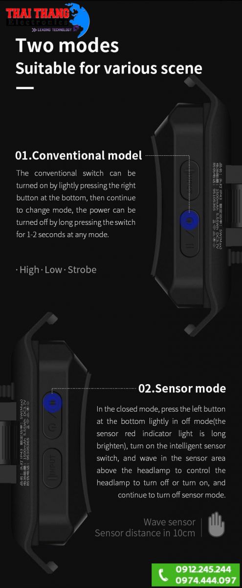 Chế độ chiếu sáng: Mạnh, Yếu, Nhấp nháy