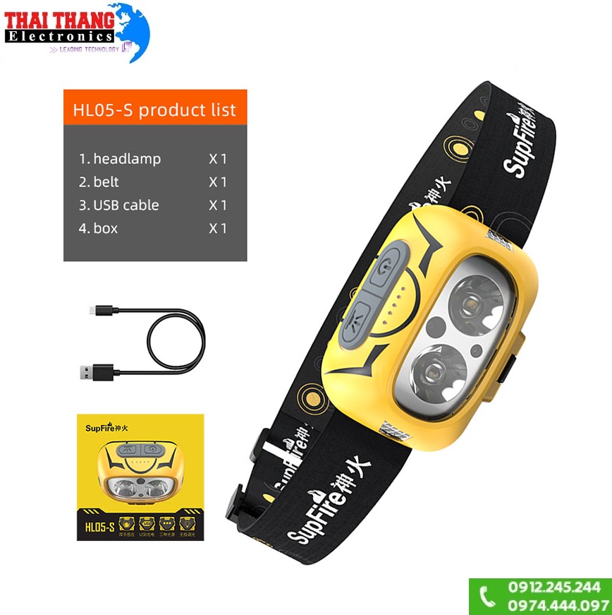Đèn pin đeo đầu chính hãng Supfire HL05-S còn được trang bị cảm biến bật/tắt từ xa cho quá trình thao tác đèn diễn ra nhanh chóng mà không cần phải chạm vào đèn, người dùng sẽ rảnh tay để thực hiện các công việc khác, khoảng cách hiệu quả của cảm biến là 10cm. Dây đeo sử dụng chất liệu thun cao cấp êm ái khi đeo trong thời gian dài và không bị nhũn thun khi sử dụng lâu. Đèn sử dụng nguồn là pin sạc Li-ion dung lượng 1800mAh cho thời gian sử dụng từ 5 đến 6 giờ tùy chế độ. Đèn báo dung lượng pin khi chiếu sáng và trong khi sạc cũng được tích hợp trên sản phẩm giúp người dùng chủ động điều chỉnh thời gian sử dụng. Chất liệu đèn làm từ nhựa ABS và PC siêu nhẹ, đồng thời mang lại độ bền cao cho sản phẩm.