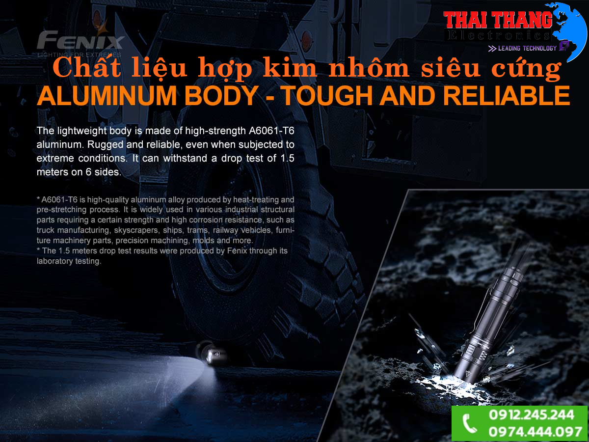 - Được làm bằng hợp kim nhôm 6061-T6 siêu bền