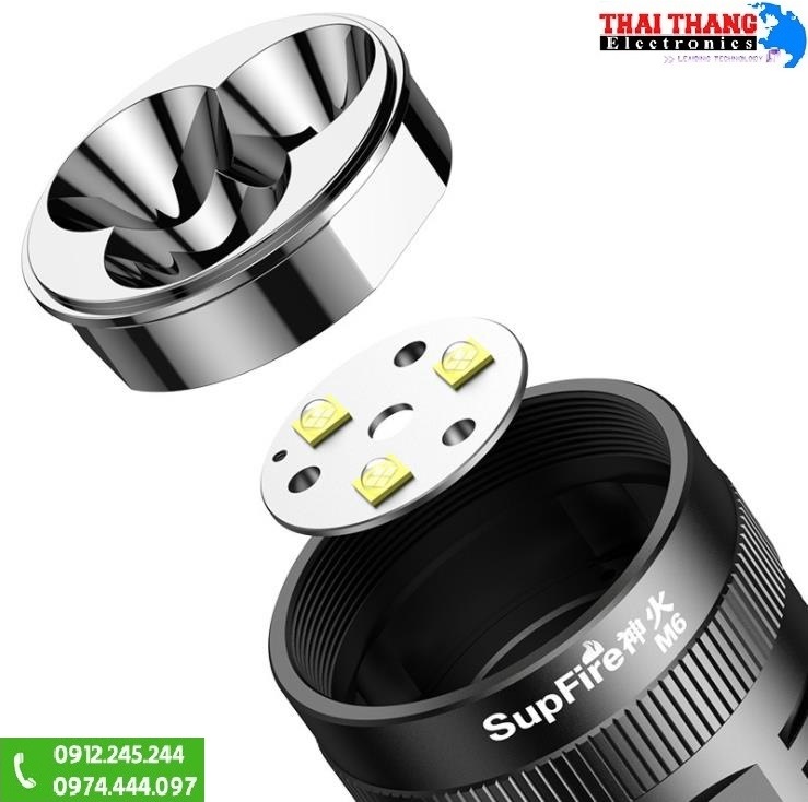 5 chế độ : Thấp> Trung bình> Cao> Strobe> SOS