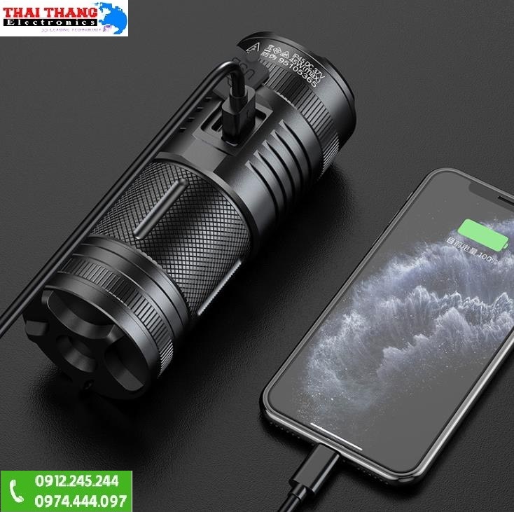 Sử dụng 4 pin lithium dung lượng cao 18650 thời gian làm việc liên tục 4 giờ với chế độ sáng nhất