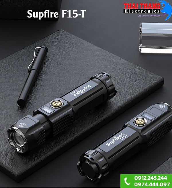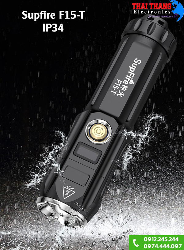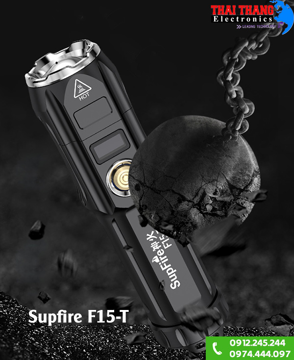 Supfire F15-T có thể chịu va đập, rơi rớt ở độ cao lên đến 1m nhờ vào chất liệu hợp kim nhôm vô cùng chắc chắn, chất liệu này cũng mang đến cho đèn trọng lượng nhẹ giúp người dùng sử dụng trog thời gian dài mà không bị mỏi tay, chuẩn chống nước IP34 cũng được trang bị cho đèn. Nguồn cung cấp cho đèn là pin dung lượng cao cho phép đèn hoạt động lâu dài. Đèn có thể sạc lại được thông qua cổng Type-C cho tốc độ sạc nhanh hơn các loại cổng sạc khác. Trên thân đèn còn trang bị thêm cổng USB cho phép đèn có thể sạc ngược lại cho các thiết bị di động khác