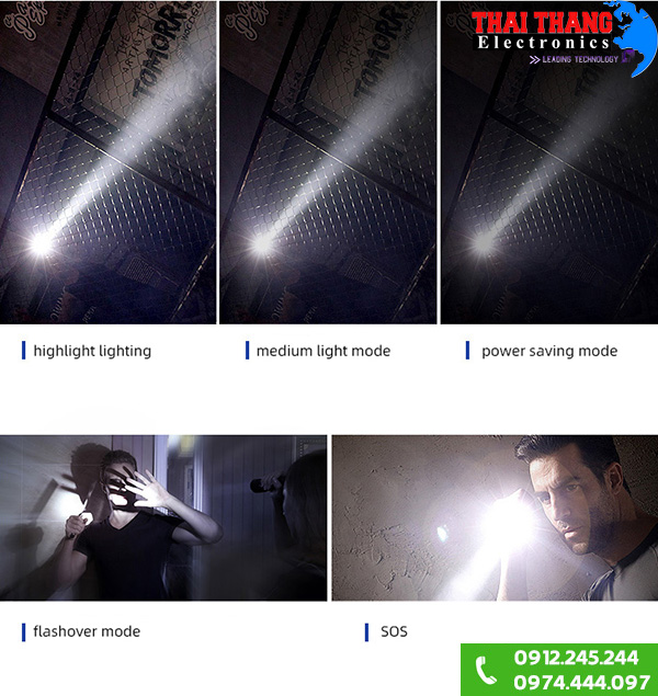 - Sáng mạnh, sáng vừa, sáng yếu, nhấp nháy, SOS