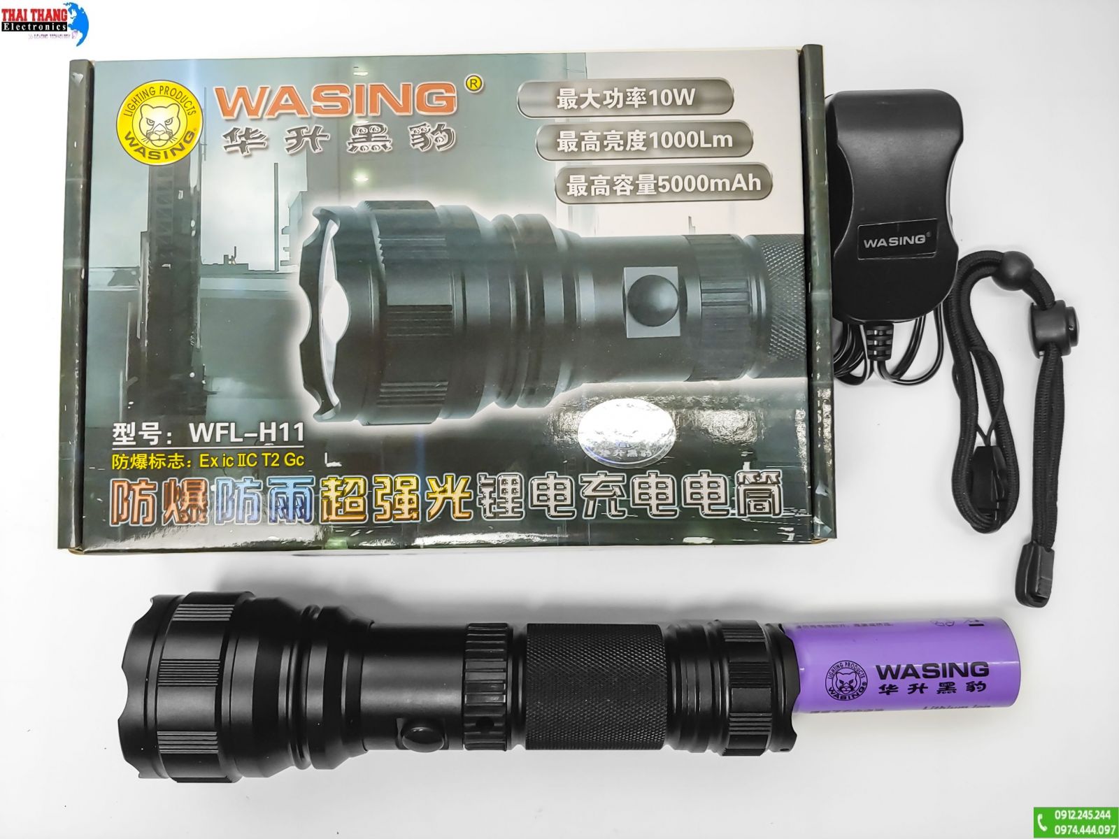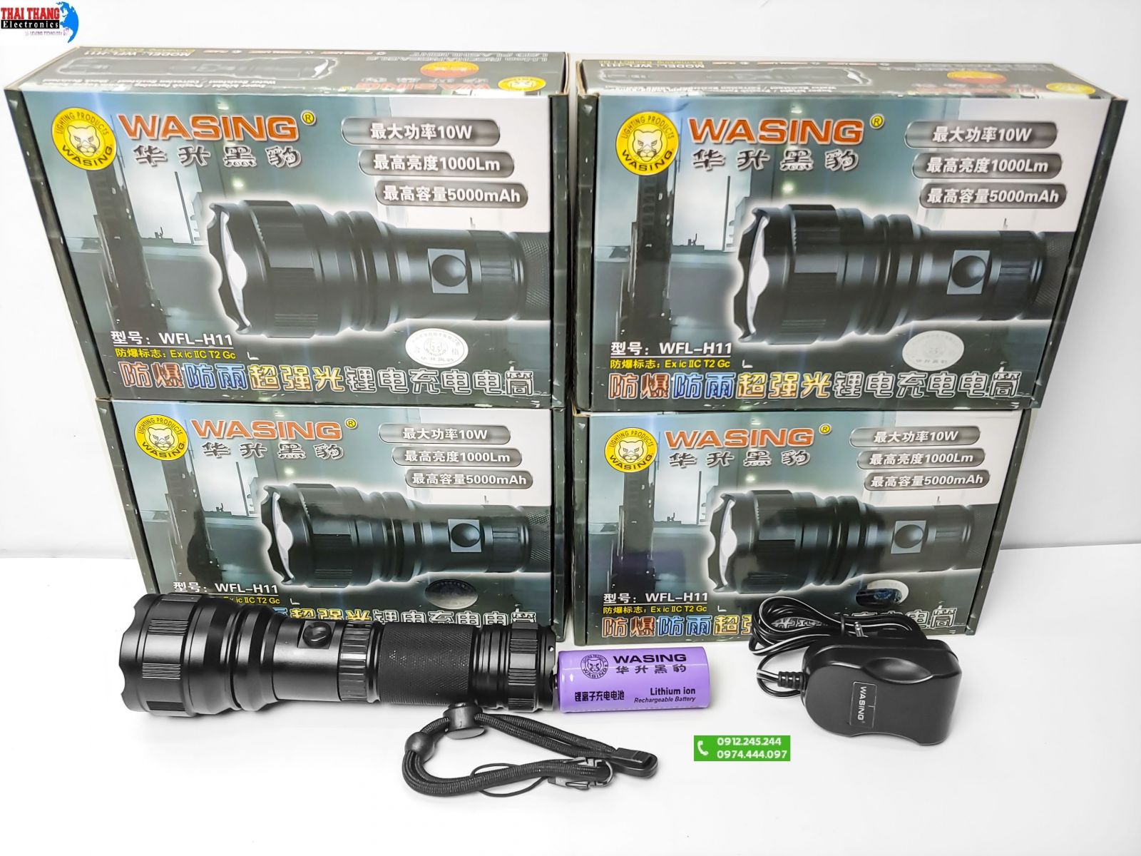 Wasing WFL-H11 thuộc dòng đèn pin siêu sáng với khả năng chiếu sáng tối đa 1000 lumen, đèn sử dụng bóng đèn Cree XM-L U2 có độ bền tuổi thọ cao. Đèn sử dụng 1 pin 26650 dung lượng 5000mah có thể đáp ứng thời gian chiếu sáng liên tục tùy theo chế độ sử dụng. WFL-H11 được thiết kế lỗ cắm sạc trực tiếp trên thân. Ngoài ra lỗ cắm sạc còn được bảo vệ bằng 1 vòng cao su. Khi sạc xong bạn quay để che lại lỗ sạc pin. Nó đảm bảo cho đèn không bị nước hay cát bụi rơi vào đèn,. Thân đèn pin được làm từ chất liệu nhôm cao cấp với công nghệ khắc CNC các chi tiết trên thân đèn cho ra độ thẩm mỹ cao, đồng thời WFL-H11 cũng đạt tiêu chuẩn chống cháy nổ Ex ic IIC T2 Gc ( chịu được nhiệt độ 300°C)