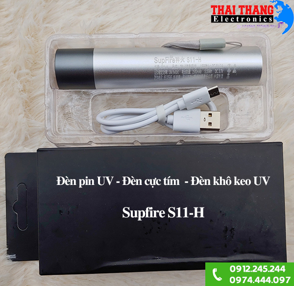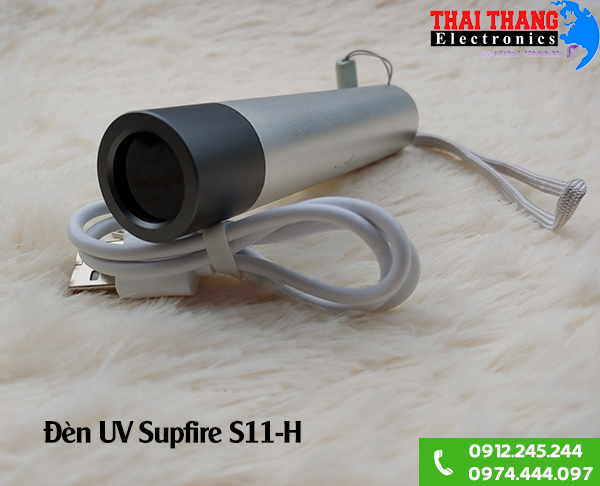 Đèn UV Supfire S11-H sử dụng nguồn là pin sạc bên trong và sạc trực tiếp thông qua cổng microUSB. Đèn có chất liệu làm bằng hợp kim nhôm siêu bền màu sắc sang trọng. S11-H được sử dụng cho hộ gia đình, cơ sở kinh doanh, quầy thu đổi ngoại tệ, ngân hàng, văn phòng,….