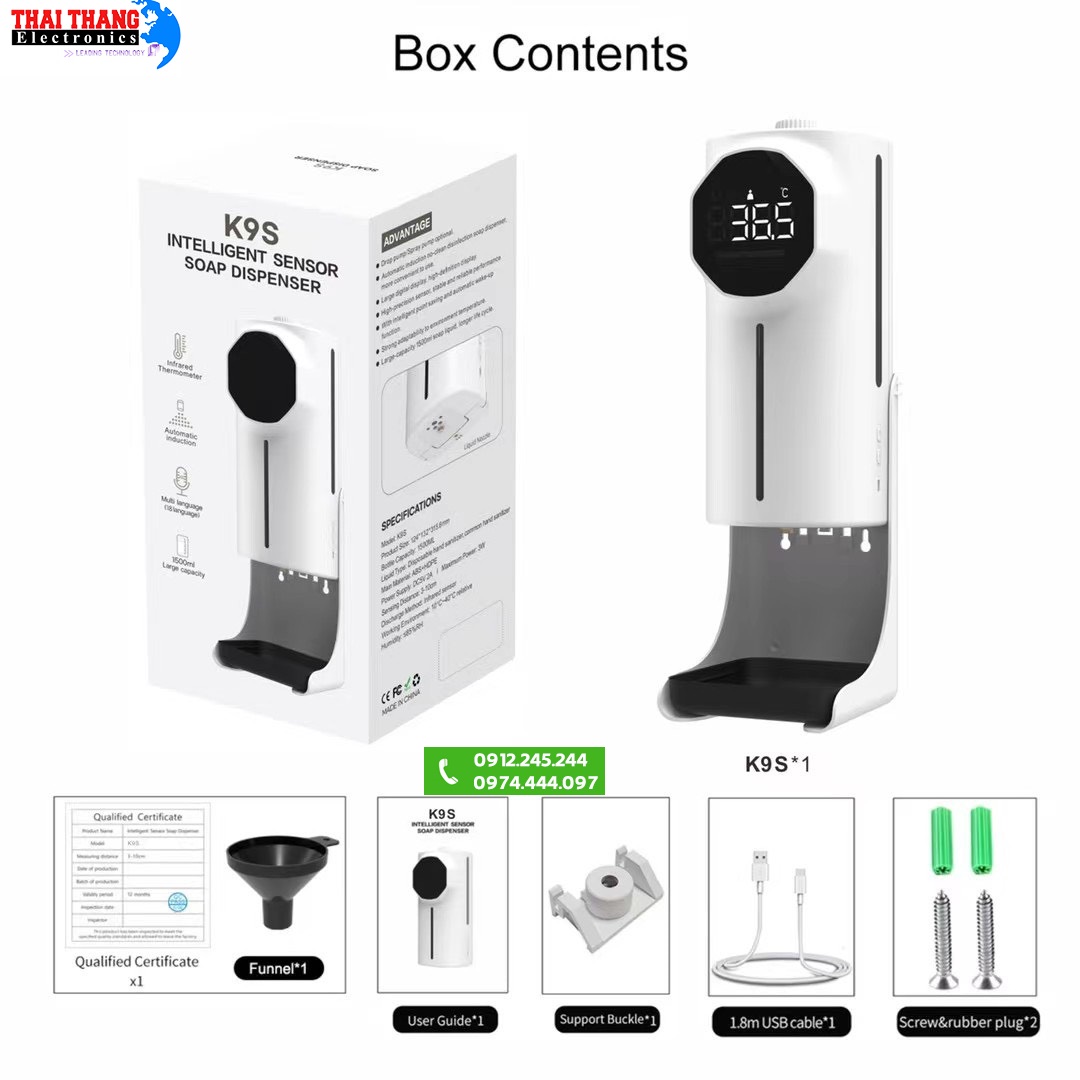 Máy đo nhiệt độ tự động xịt khuẩn K9 Pro Max 2 cảm biến đo tay và đo trán