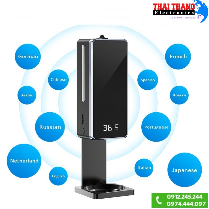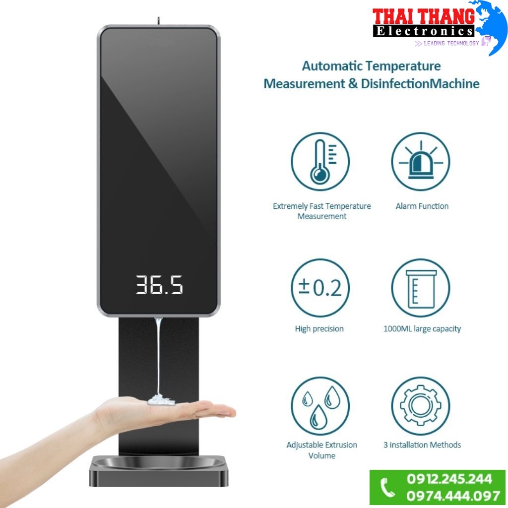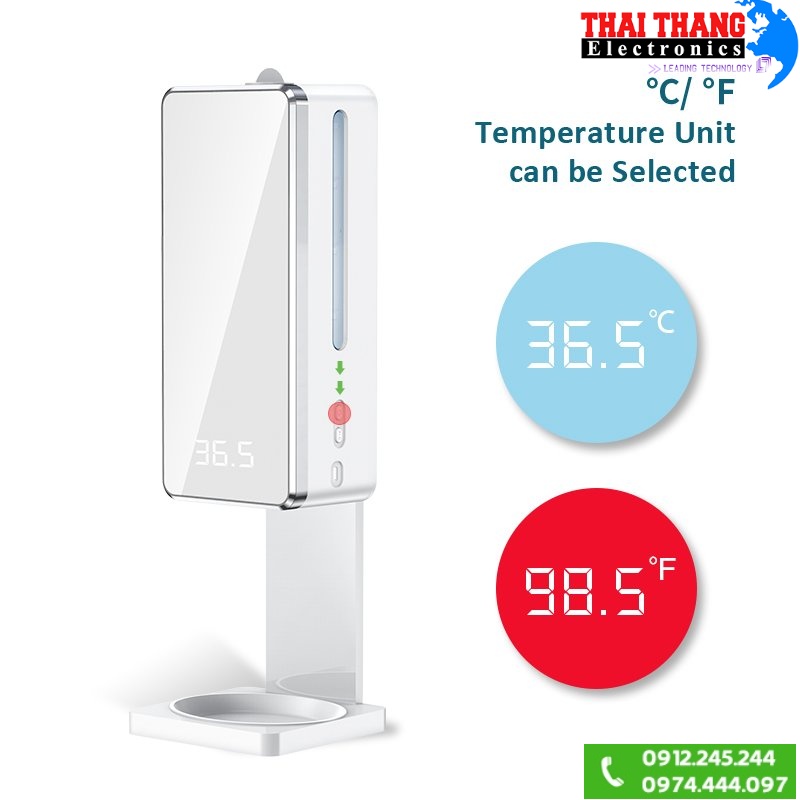 - Là thiết bị đo thân nhiệt chuyên dụng kèm xịt khuẩn tự động
