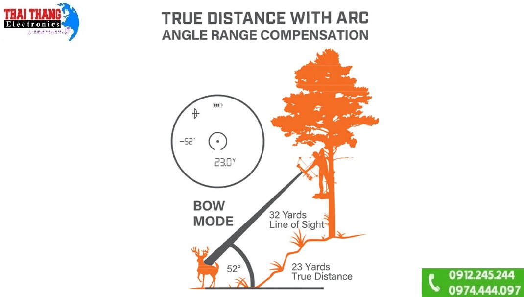 - Chế độ đo ARC xác định khoảng cách thực theo phương ngang tới đối tượng